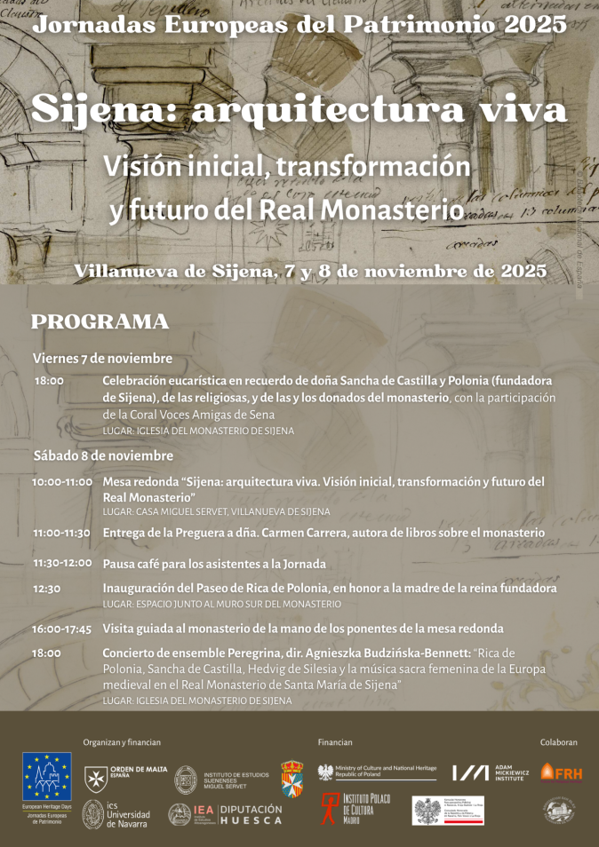 'It's such a remote place that it's almost impossible to get there.' Since the Cantrix CD was released in 2013, the prospect of performing in Sijena and singing the pieces for St John the Baptist, as they have been sung and prayed for ages by the Sisters, has always seemed distant. The circumstances surrounding the Peregrina ensemble's lecture and concert in Sijena on 8 November 2025, the vigil of Queen Sancha's death anniversary, coinciding with the European Heritage Days conference on Sijena's architecture, and the opening of the Paseo Rica de Polonia, can easily be called providential. It seemed as if all powers in heaven and earth were calling us to Sijena on that day. When the distant vision became reality, it was already November 2025. In such a short time, the Peregrina ensemble was able to gather and travel to this 'remote' place. All the effort was worthwhile to be there and experience the living sounds within the walls of the monastery church.